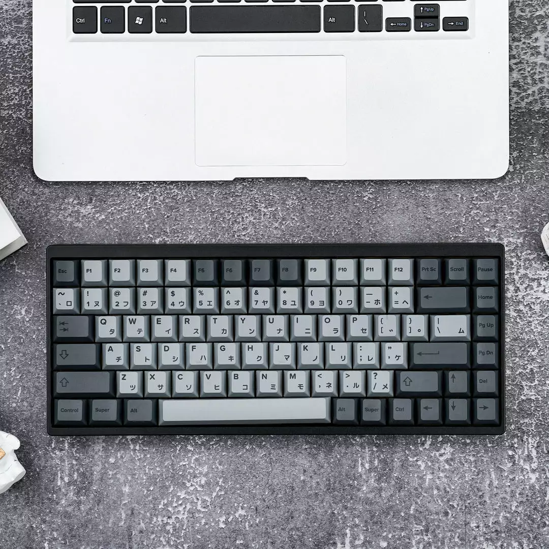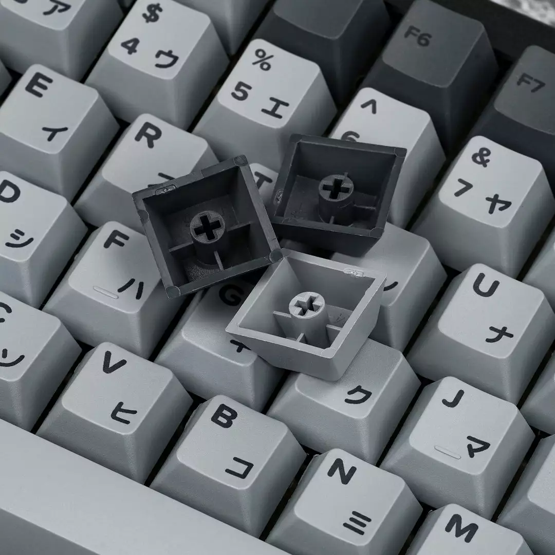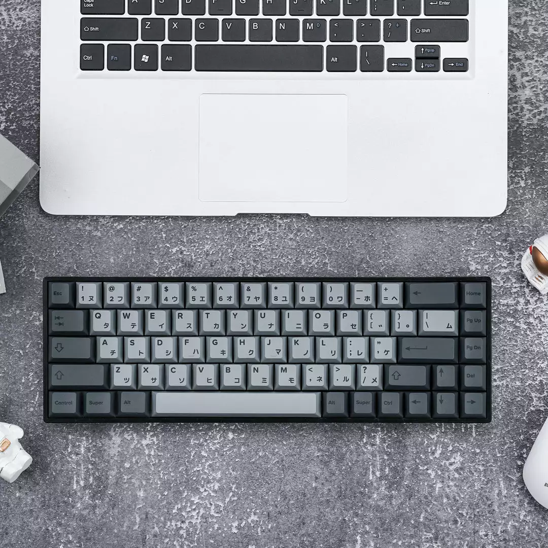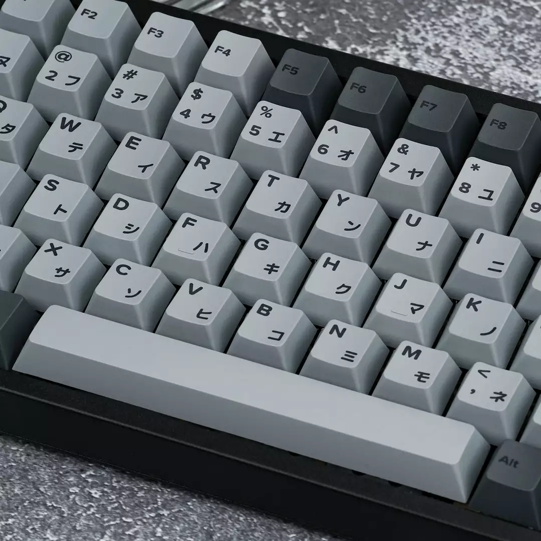 Fully Assembled keyboard with Cement Grey Japanese PBT Keycaps Collection