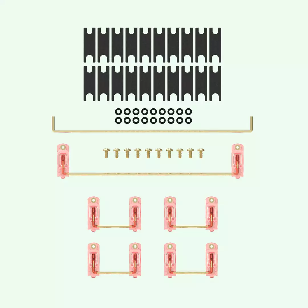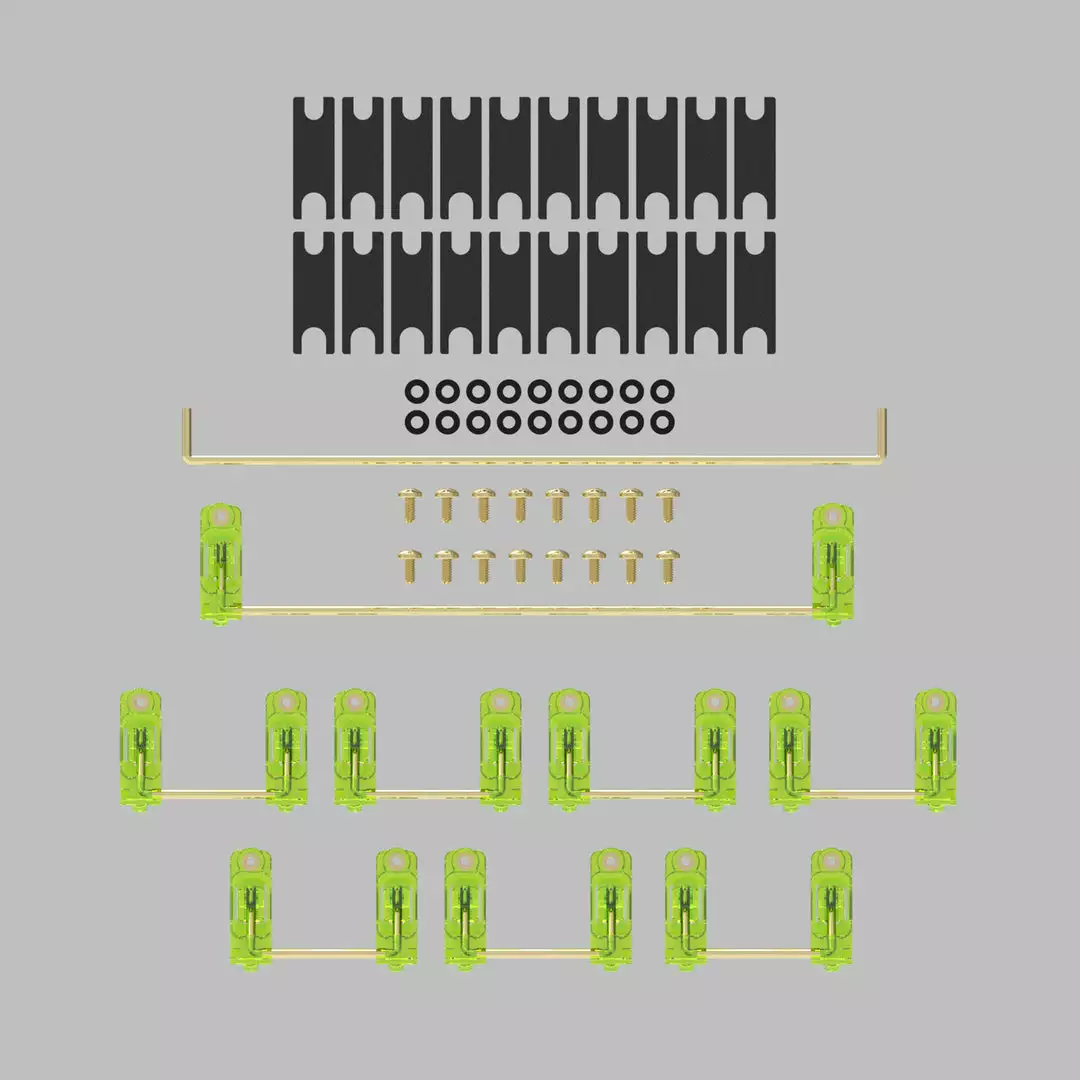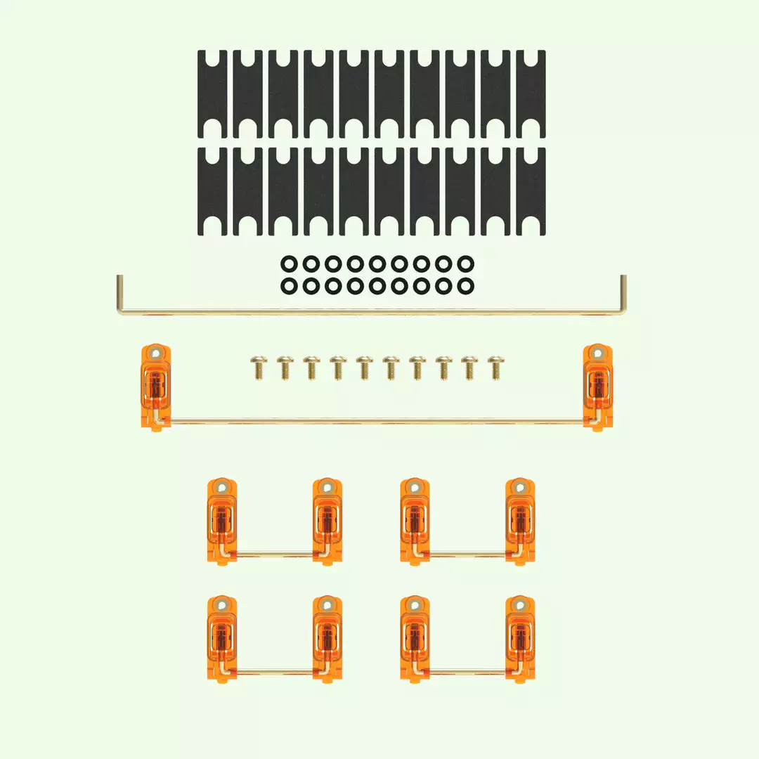 - 104kit: 2U x7οΌ6.25U x1οΌextra 7U wire x1,Β Stabilizers foam sticker, screws, and washers