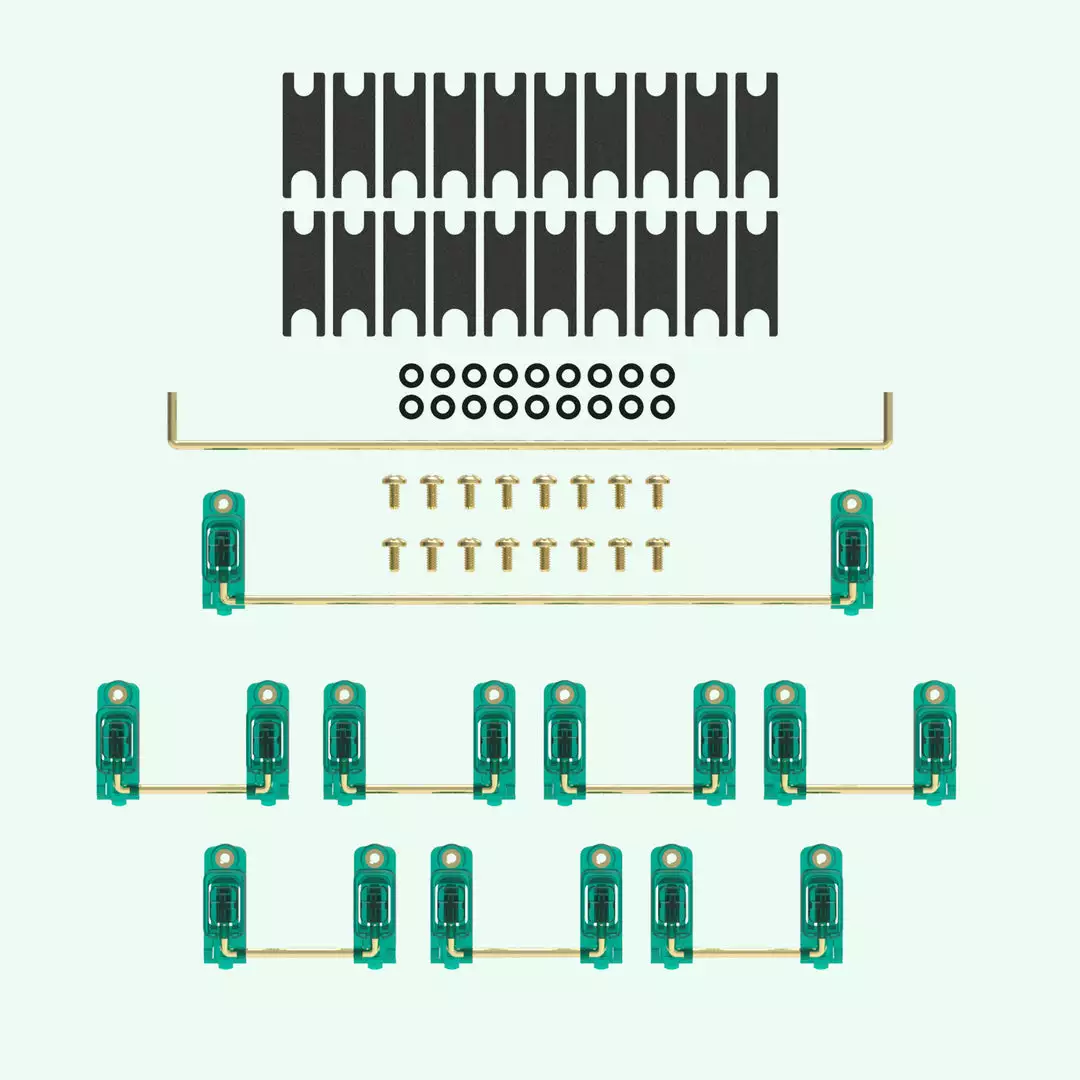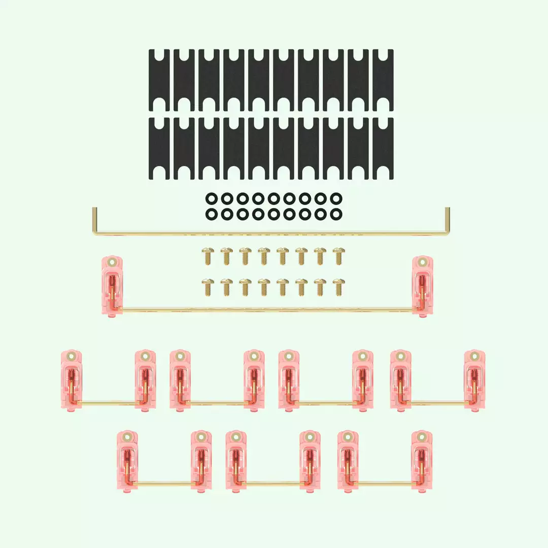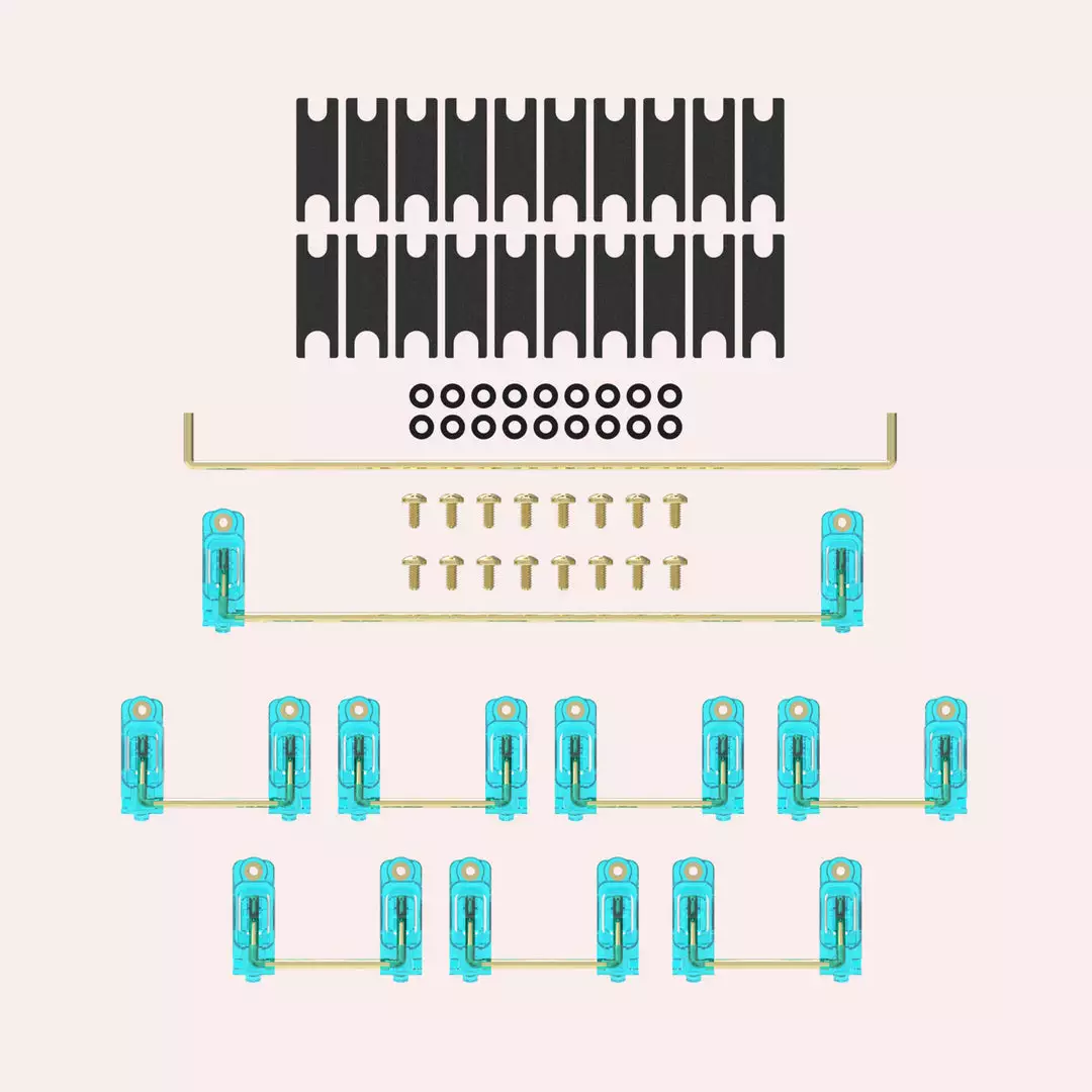 - 104kit: 2U x7οΌ6.25U x1οΌextra 7U wire x1,Β Stabilizers foam sticker, screws, and washers