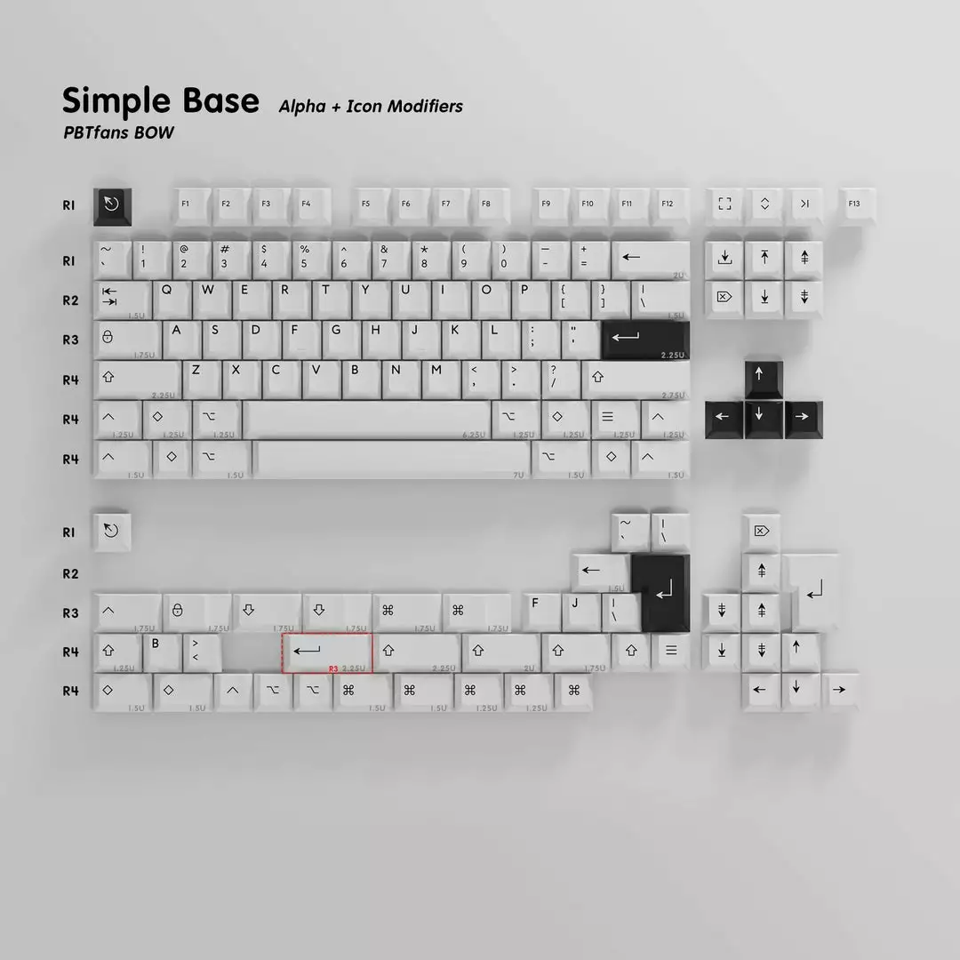 - Keycaps:Β PBTfans Doubleshot BOW Keycaps – Base Kit (SKU:PT03-2)