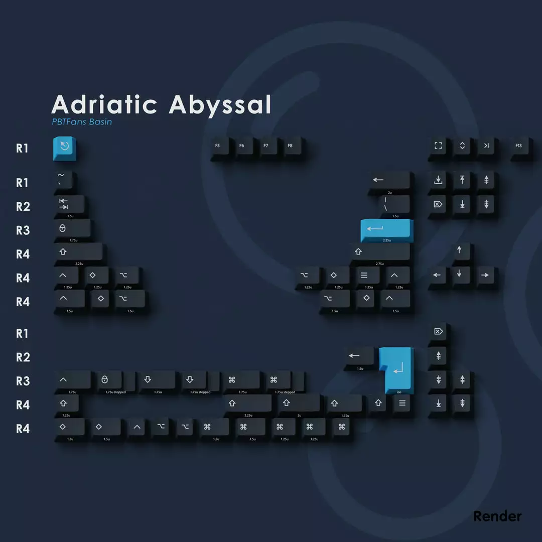 We designed this set to reflect the dynamic blue-grays of the ocean. Amidst the vastness of an oceanic basin are a wide variety of colors, and we have chosen a sinking gradient to portray diving into the depths of the ocean.