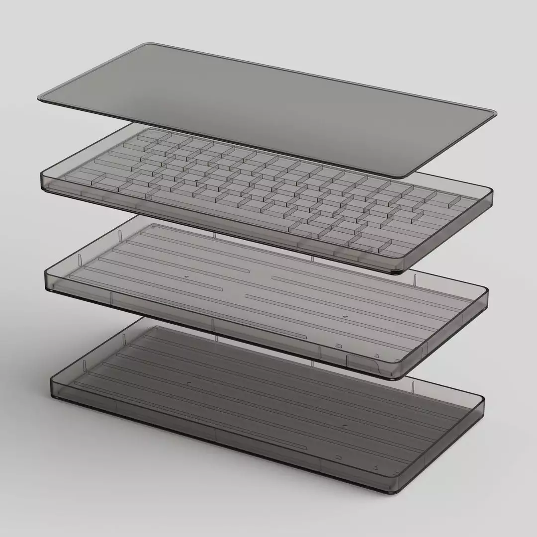 - Layer 2/3: Stores up to 105 1U keycaps, supports 2 ISO Enter keys and 2U squares