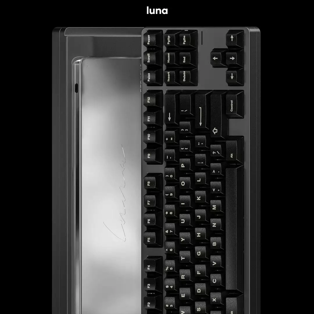 We really can’t bear to not destroy the lines of Luna’s body, so we designed the overall screwless structure, by the screw holes hidden in the upper cover to tight the whole keyboard, after the keycaps installed the whole keyboard will be a natural.