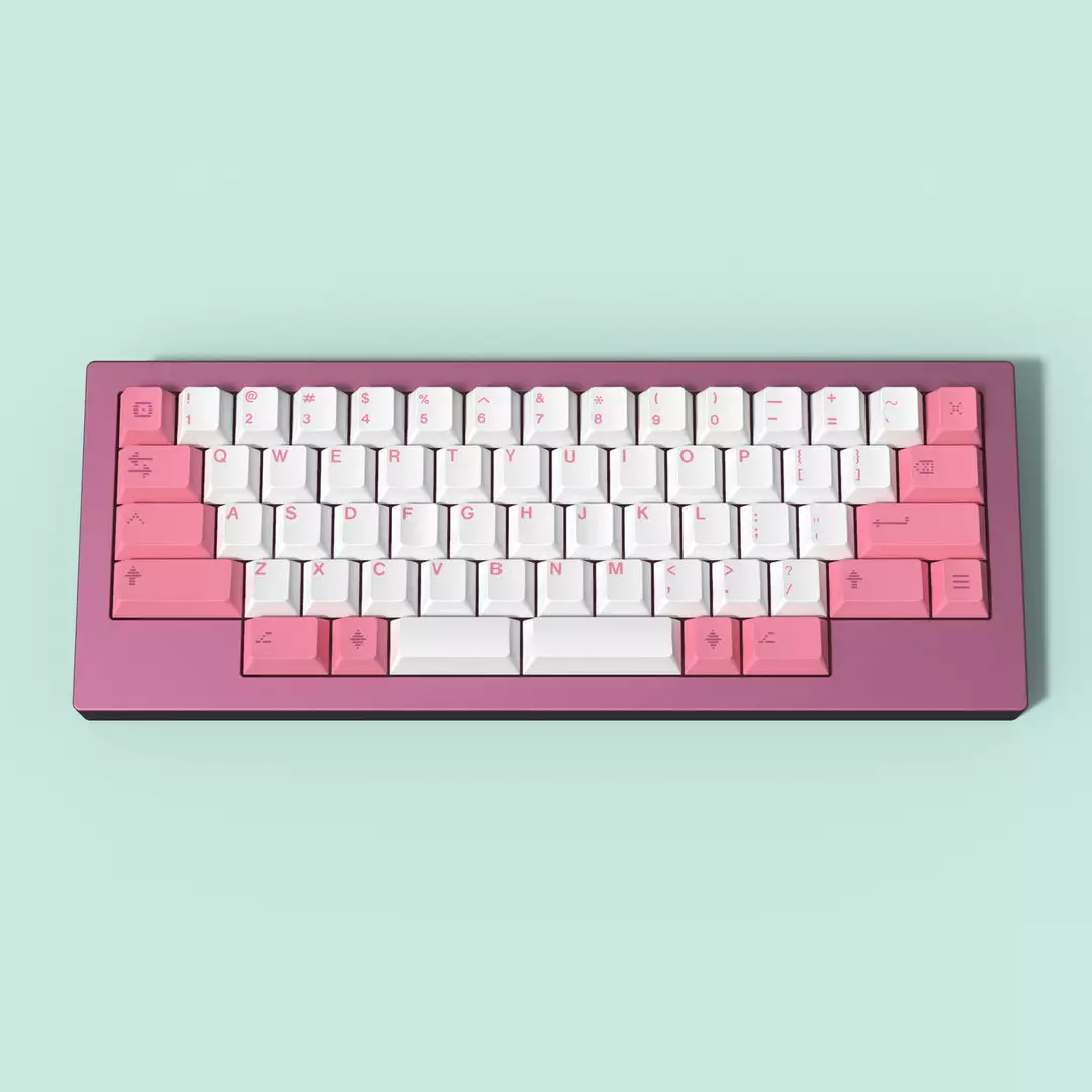 Formerly introduced as GMK Cherry Blossom (and then KAT Aesthetic), I’ve sought to improve this set, and I’m very pleased with the result.