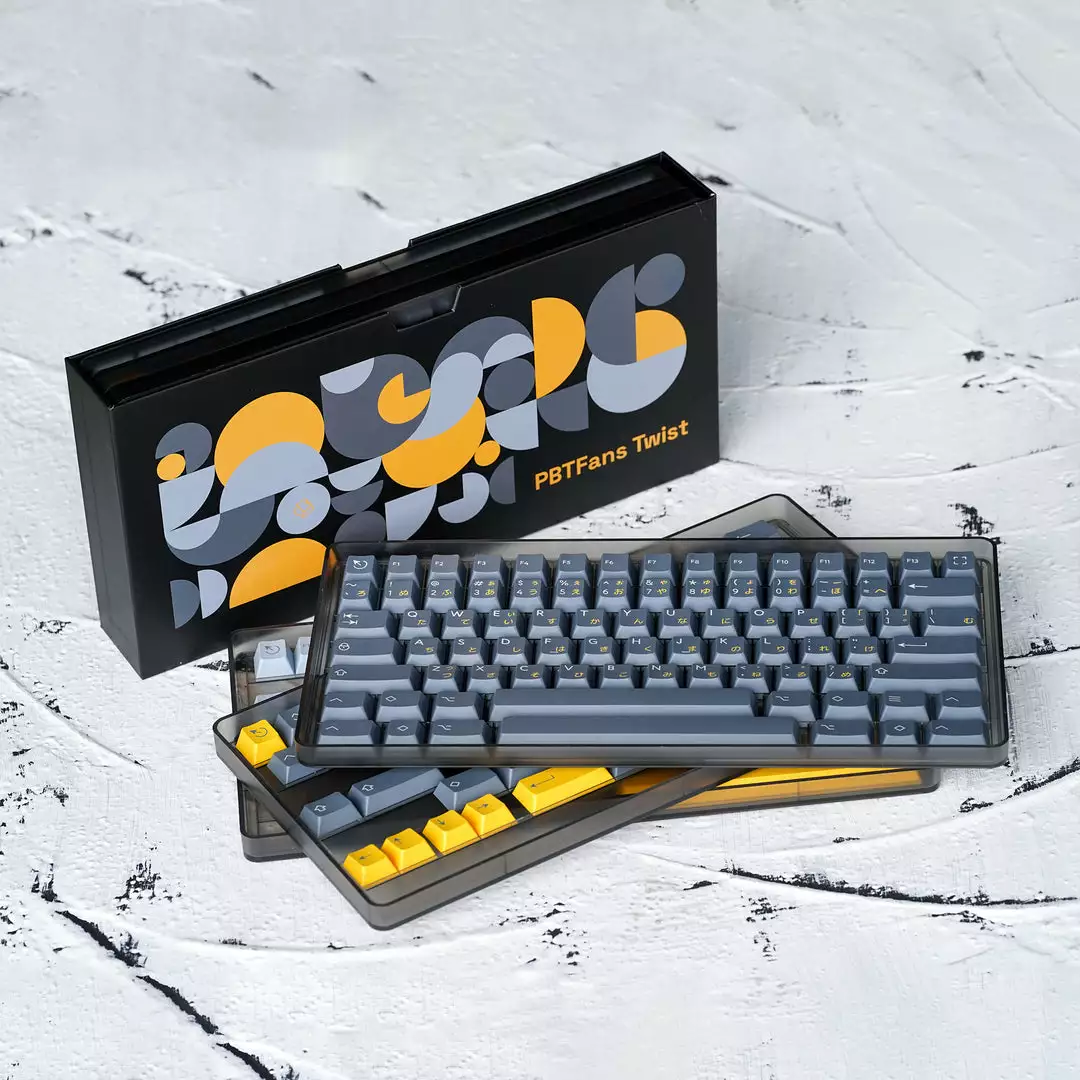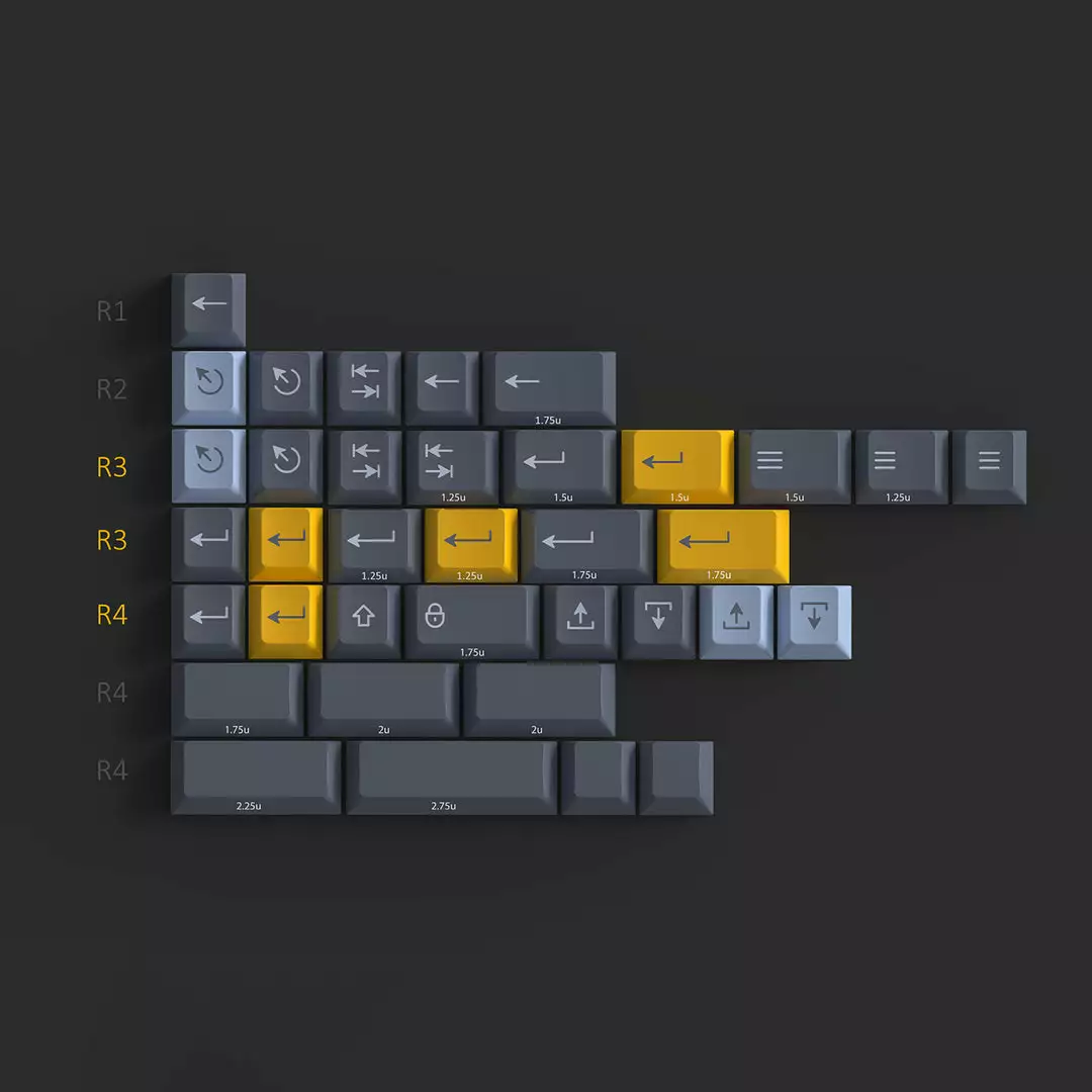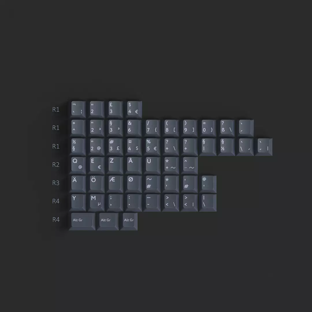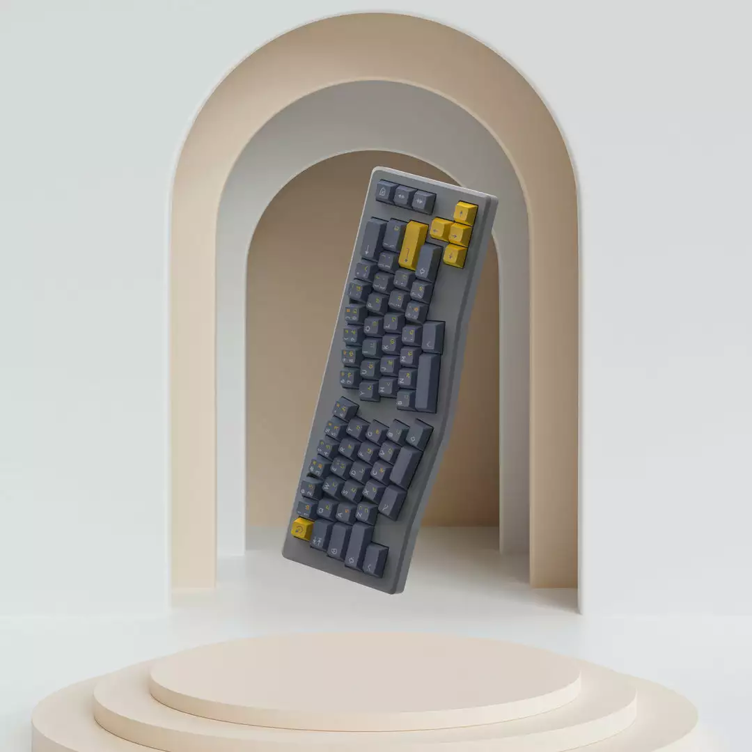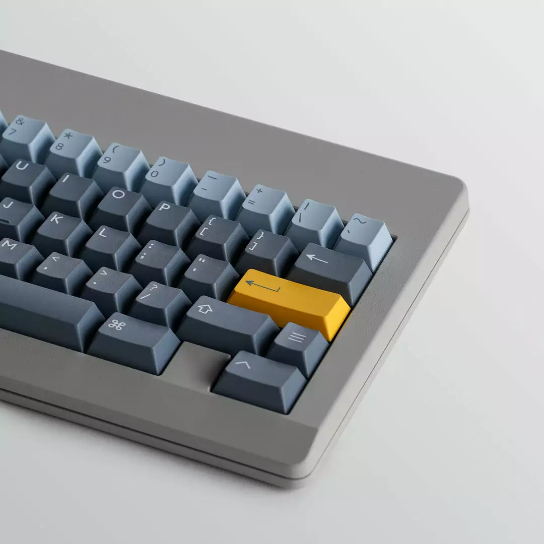 Inspiration: Born from a desire to pay tribute to the first home computers such as the Thomson TO7 or the Canon V20, this set has its roots in industrial design. It’s a vintage looking keyset that pays homage to its predecessors while remaining contemporary. Understated, go-anywhere, its grayscale color scheme matches any keyboard that’s reminiscent of most keyboards seen in the 80s, as well as the yellow accent color which adds a touch of singularity. The triple-shot technology makes it possible to have a different legend color and sub legend color, adding a new touch of uniqueness, in addition to the extra top row with a lighter gray.